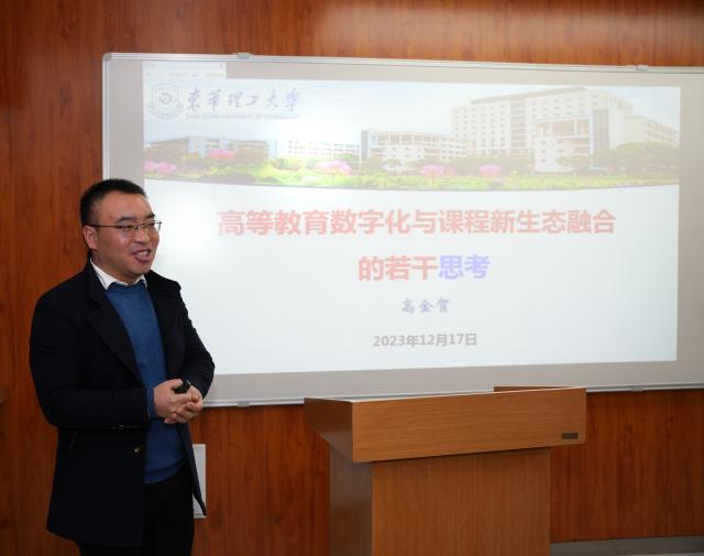 东华理工大学现代教育技术中心主任高金贺以《高等教育数字化与课程新生态融合的若干思考》为题作专题报告。报告具体分析了国内外高等教育数字化发展动态,提出了数字化视阈下课程新生态的构建思路。