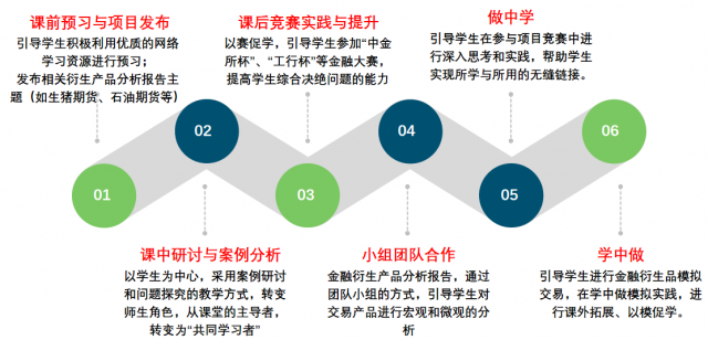 问题探究式教学。基于经典金融衍生产品评点、金融衍生产品创新与设计、金融衍生品交易分析报告和金融衍生产品案例研讨,以层次递进的关键问题为线索,引导学生从被动学习转为主动学习,注重学生创造力的培养,挖掘其中蕴含的思政要素,引导学生全面发展。